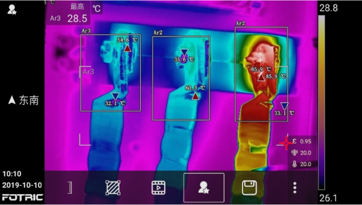 本機(jī)可以設(shè)置環(huán)境溫度為基準(zhǔn)溫度,屏蔽環(huán)境溫度干擾,自動計算設(shè)備的溫升,同時可以自動計算電氣設(shè)備的相間溫差,實現(xiàn)更科學(xué)的診斷分析。