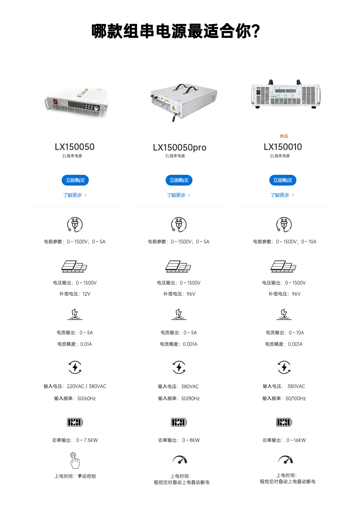 LX150050系列為研發型程控電源,通過程序軟件系統控制組串電源的電性能與保障措施。其pro版本為?品質軟件配置,選?更?品質的進?電?元器件搭配開放式編程主機,可更好的保障組串檢測穩定性與安全性。