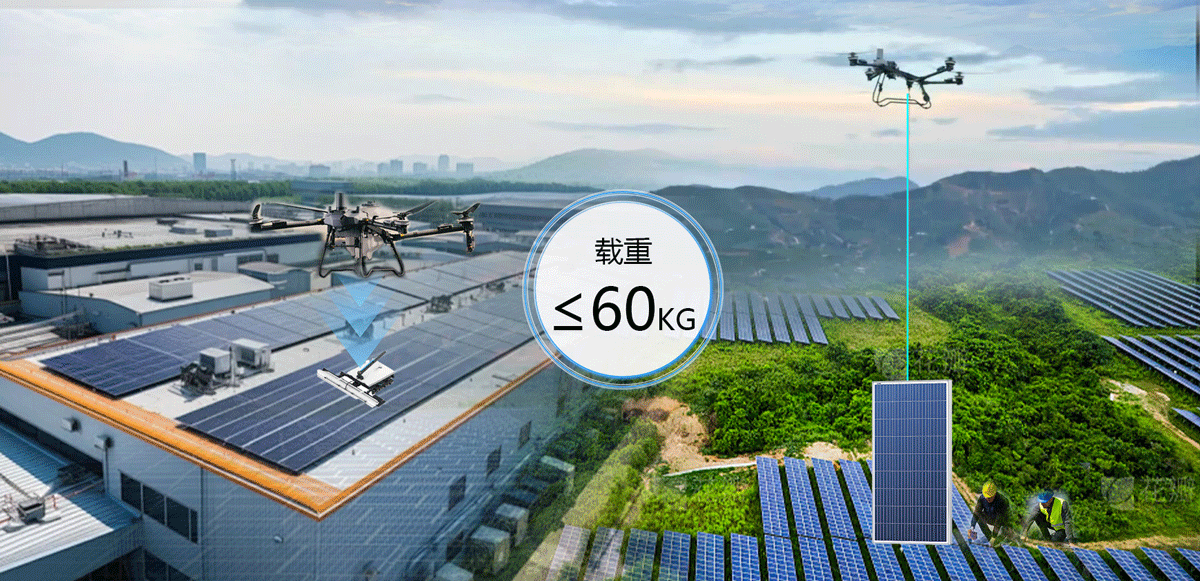 LXH233可載重60kg吊裝,不僅可滿?光伏?洗?常使?,同時可拓展,光伏組件吊裝以及設備裝置的吊裝?作使?,具備更多的應?場景。