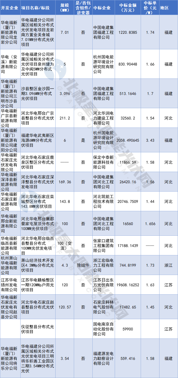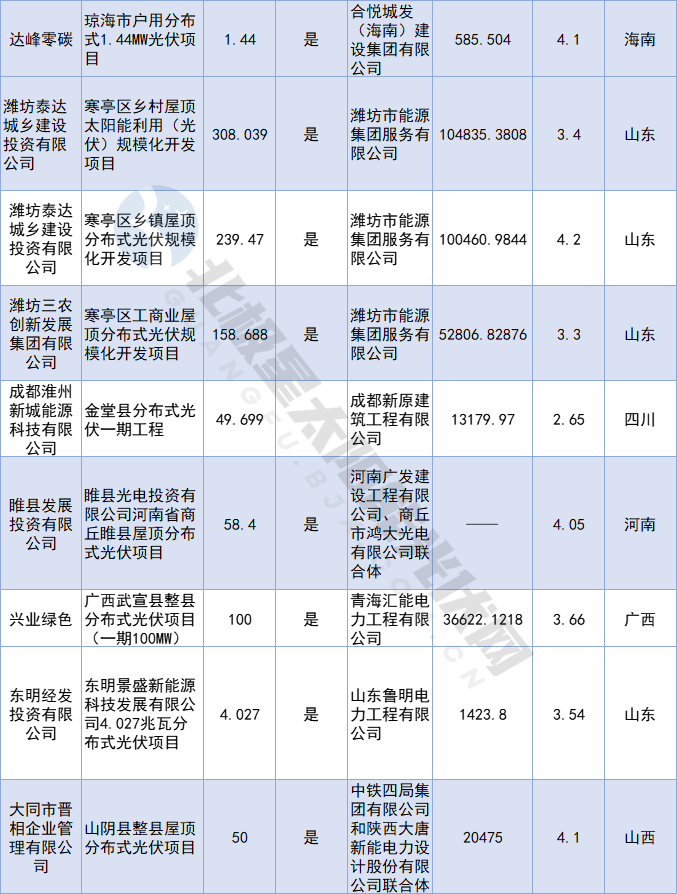 從價格來看,大EPC項目最高價格5.04元/W,最低價格為3.28元/W。小EPC項目中,最低價格為華能杏花嶺區屋頂分布式光伏首批試點項目,不含組件設備,中標單價折算為1.24元/W;最高價格則突破3元/W,甚至超過大EPC項目的最低價。